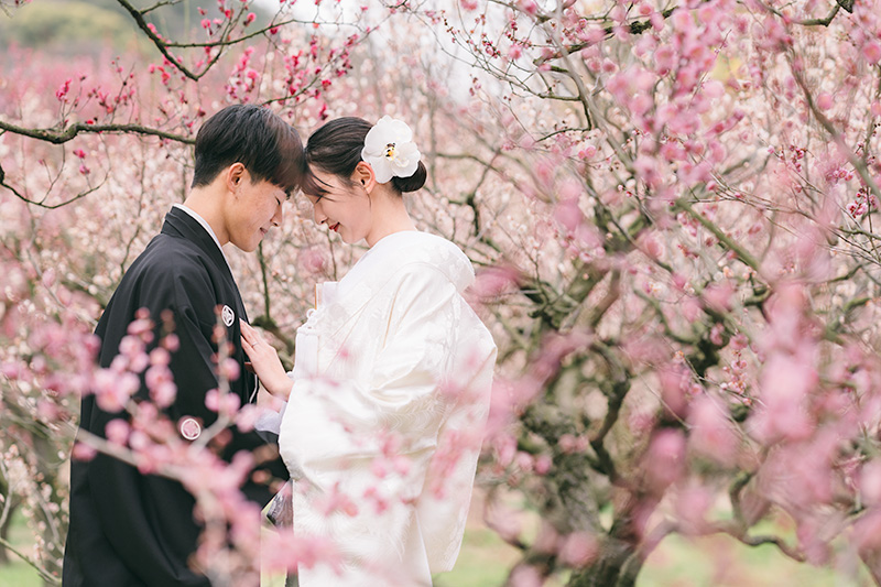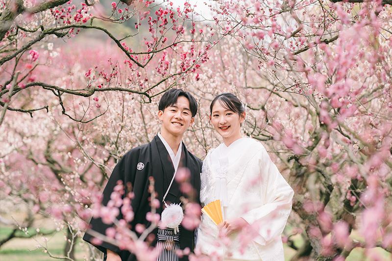 和装(白無垢・色打掛など)と梅の組み合わせが非常に人気で、お得なキャンペーンがあり費用が抑えやすく、特別な思い出作りにおすすめです!