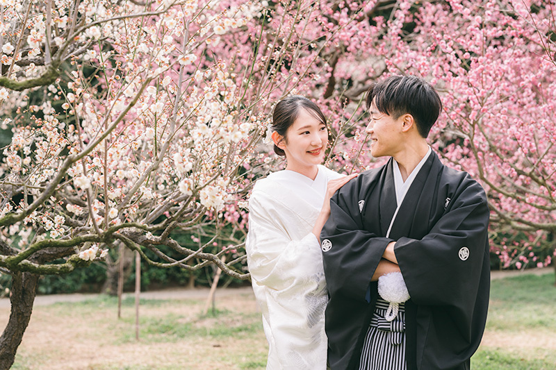 梅のシーズン前撮りは、桜とは違う上品で趣のある和装写真が撮れ、予約が取りやすいシーズンとなります。